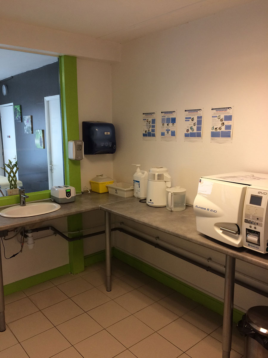 La stérilisationLes instruments utilisés au sein du cabinet sont décontaminés dans un bac à ultrason, puis séchés, mis sous sachets et enfin stérilisés pour chaque patient. |
