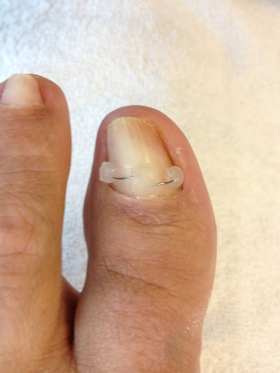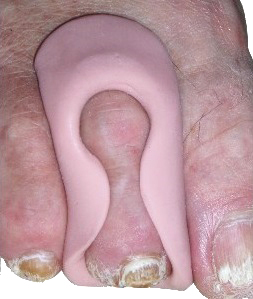 Les orthonyxies :Appareillage corrigeant la courbure de l'ongle permettant de limiter les conflits entre l'ongle et la peau (ongle incarné, cors...). |